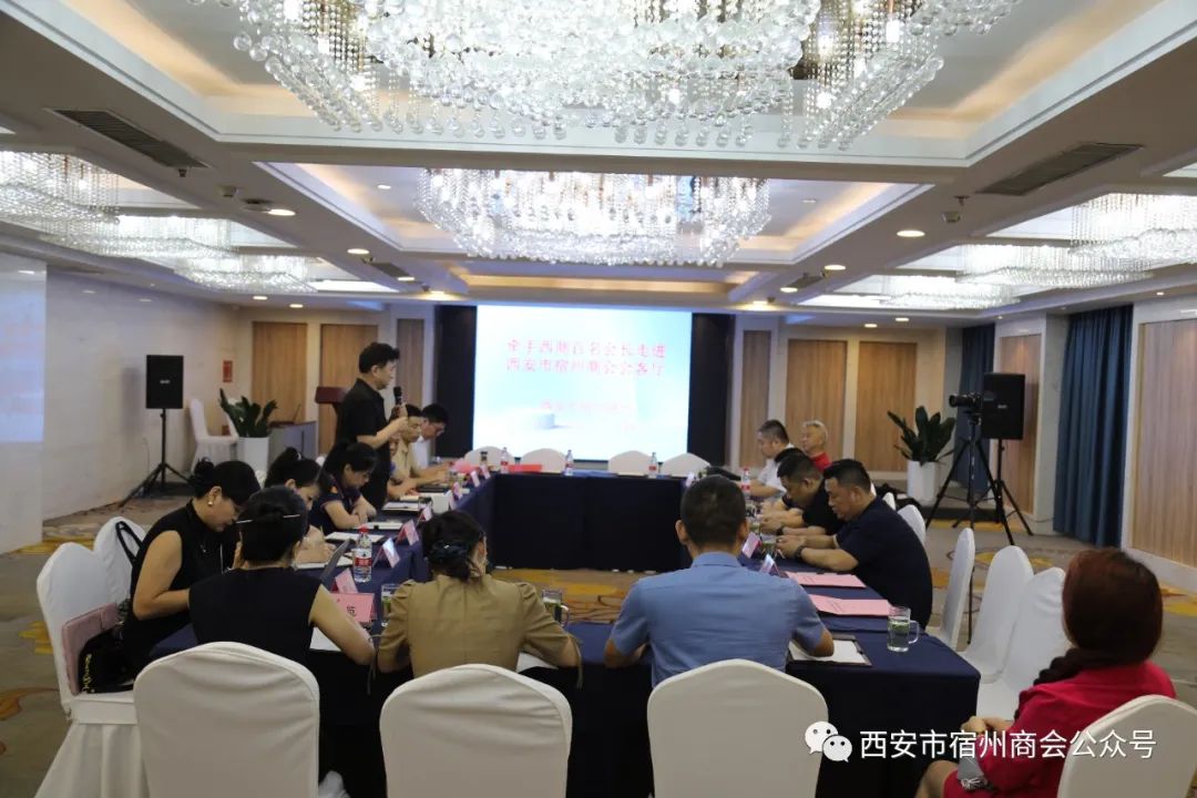 会上,路世新会长对各位会长在百忙中赶来参加本次活动表示热烈欢迎和衷心感谢!前两次活动一经发出,受到许多异地商会的关注,大家都期盼能受邀参加,共聚友谊、共谋发展,后续我们将源源不断的邀请更多的会长参与。路会长向大家介绍了宿州市、西安市宿州商会及会员企业的基本情况,明确了活动的目的和意义,他希望集思广益,汇聚精英,大家共同探讨,共商对策,共谋发展,更好的帮助会员企业渡过艰难。