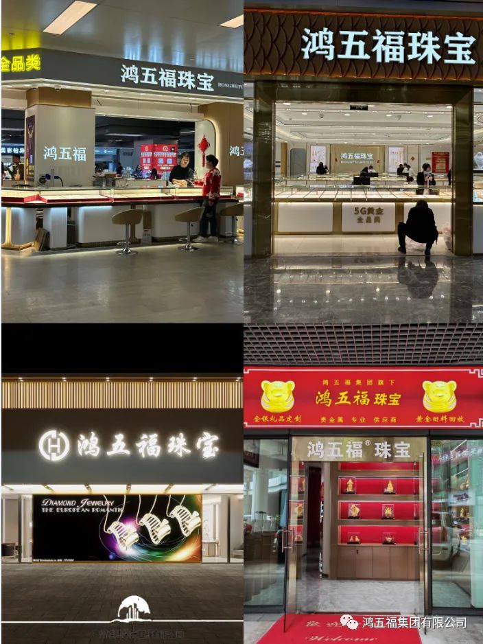 鸿五福珠宝为鸿五福集团旗下全资子公司珠宝品牌商标,鸿五福珠宝下设一家金条加工厂、两家珠宝首饰加工厂、多家实体自营、加盟珠宝实体金店。