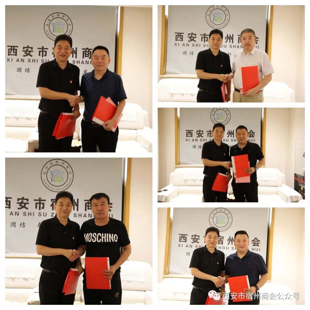 近日,西安西商联合会会长于建安、陕西省内蒙古商会会长张子旸、西安市阜阳商会会长高阔、监事长孙跃华、办公室主任武黎、西安市邢台商会会长谢国各、西安市杭州商会会长杨永明、西安市金华商会会长蒋德其一行走进西安市宿州商会会客厅,西安市宿州商会会长路世新、执行会长马技、常务副会长王莉、朱安辉、王迎利、副会长单位代表陶红、秘书长郑蒙、会长助理李览、办公室主任郑宇虹等热情接待会长一行并召开座谈。西安市旬邑商会会长宋涛、副会长杨鹏应邀出席活动。
