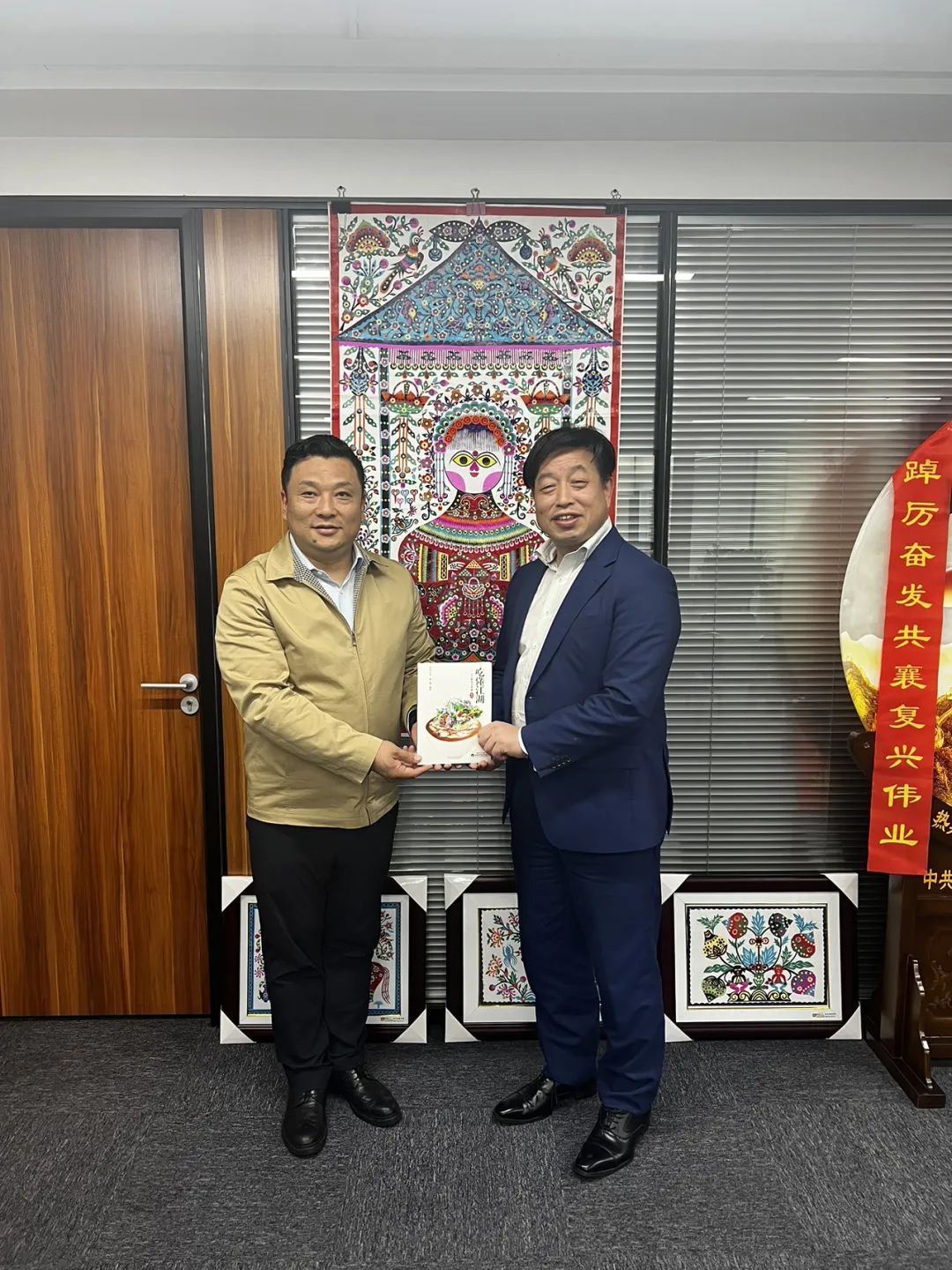 宋涛为金小刚会长一行赠送了我会荣誉会长赵东科的作品“吃懂江湖”