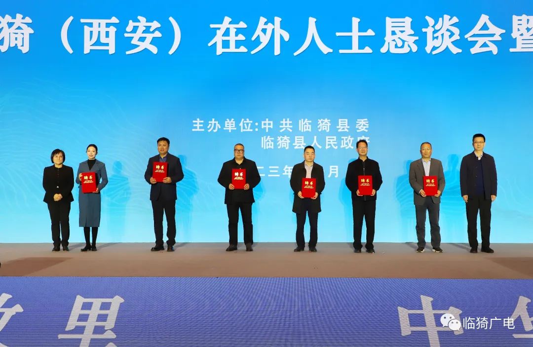 在项目签约仪式上,共签约项目6个,总投资33.6亿元,涉及农产品深加工、生物技术、新材料、新能源等多个领域,为加快构建临猗现代化产业体系注入强大动能。随后,临猗县分别与西安交通大学、西北工业大学、西安交通大学第一附属医院签订产学研合作协议、共建优质生源基地协议、双向转诊合作协议,为高质量发展培养和招引更多“科技英才”“产业帅才”“行业专才”。靳国全、张建莉、高力为在外人士代表颁发临猗县高质量发展咨询顾问和临猗驻西安招商大使聘任证书。